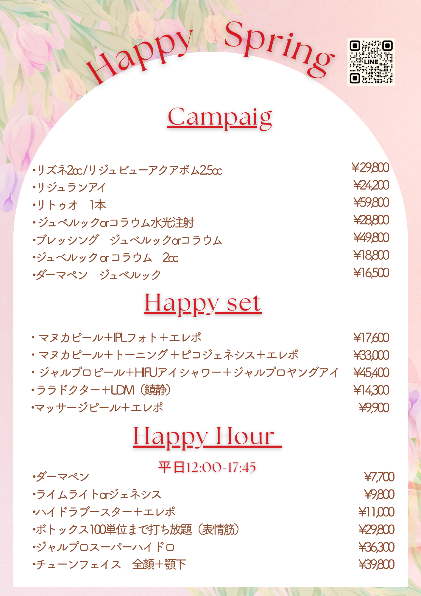 大人気の施術は早めにご予約が埋まりますので、お早めにどうぞ!