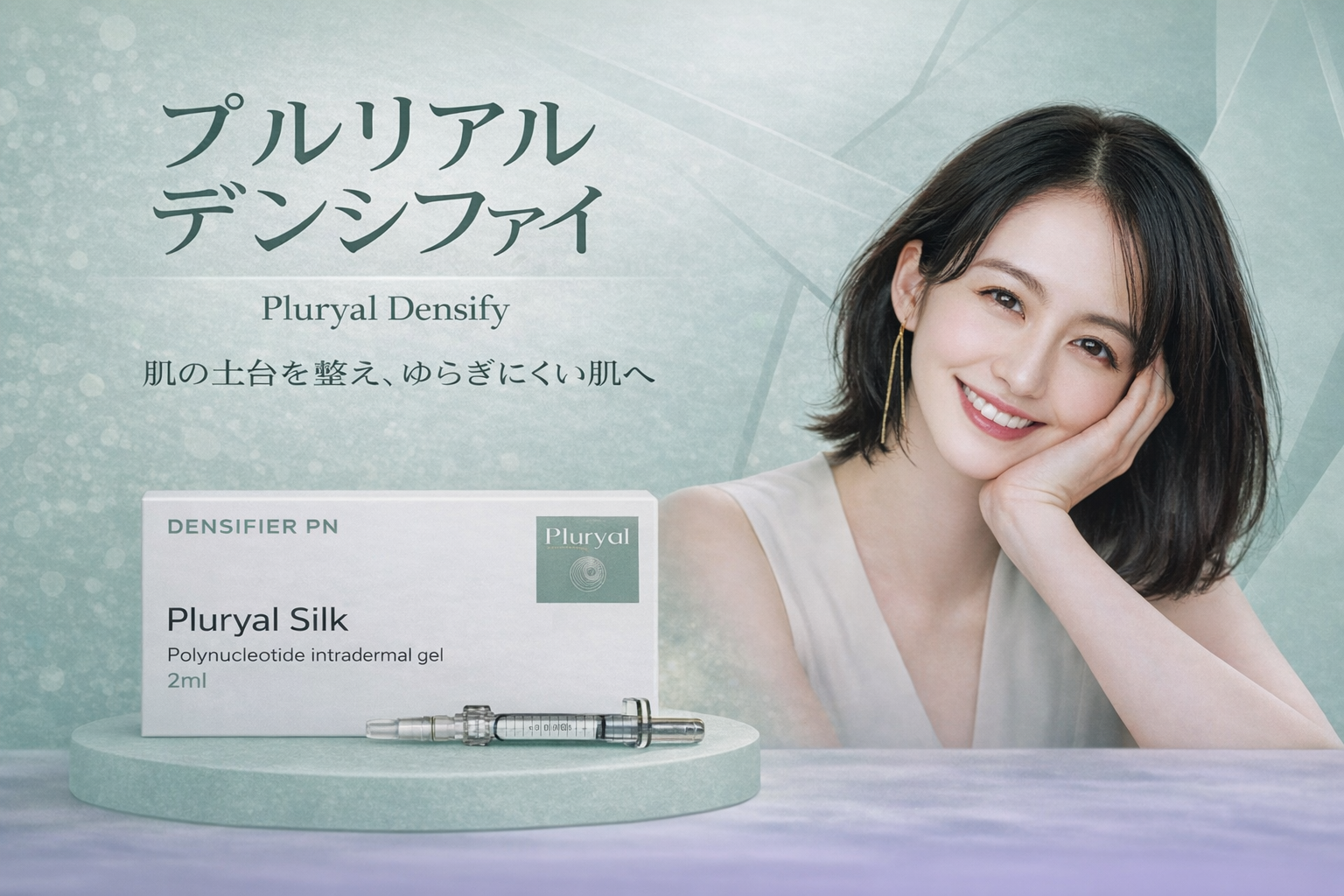 プルリアルデンシファイは皮膚に高い適合性をもつサーモンのDNAから抽出した分子であるポリヌクレオチド(PN)と非架橋のヒアルロン酸、マンニトールで組成されています。
