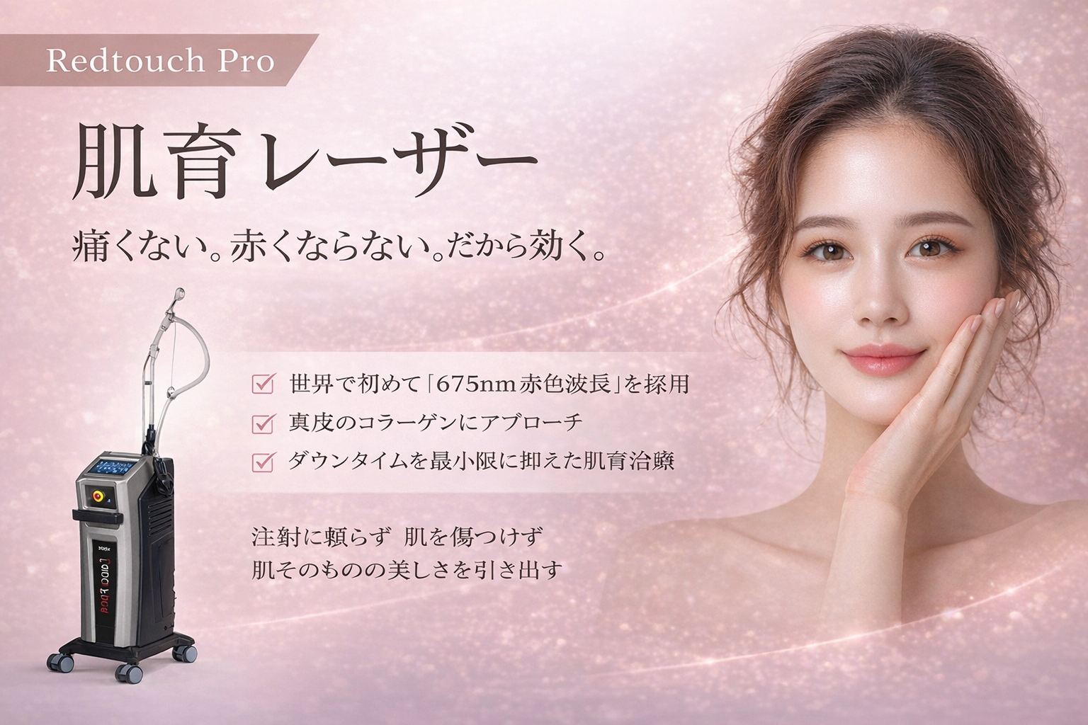 Redtouch Pro(レッドタッチプロ)は、世界初の「675nm波長」を用いた赤色フラクショナルレーザーです。