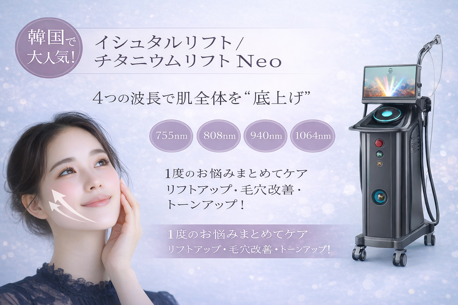 チタニウムリフティングでは3波長で肌にアプローチしていたのに対し、イシュタルリフト(チタニウムリフトネオ)では4波長に進化。